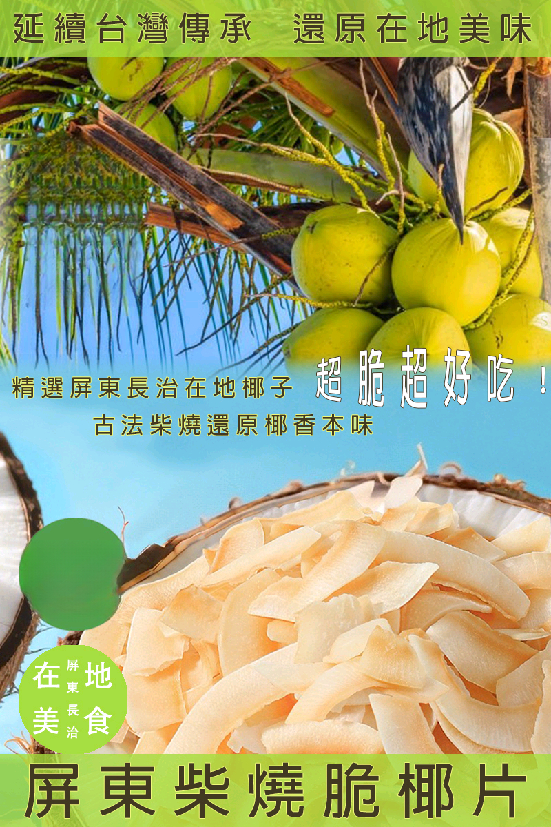 【屏東柴燒脆椰片】 古法柴燒,椰香四溢,還原在地美食,低脂0卡控制血糖,駐顔美容。 陽光與火的共舞!屏東古法柴燒,淬鍊出絕頂香脆 一口脆響,滿口椰香!非油炸的天然零食革命 南國陽光的酥脆獻禮!這片椰香,讓人停不下來