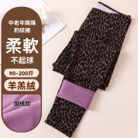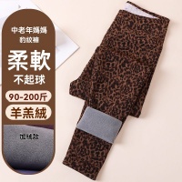 豹紋薄棉褲女士薄款加絨保暖褲時尚高腰光滑面彈力加肥加大打底褲