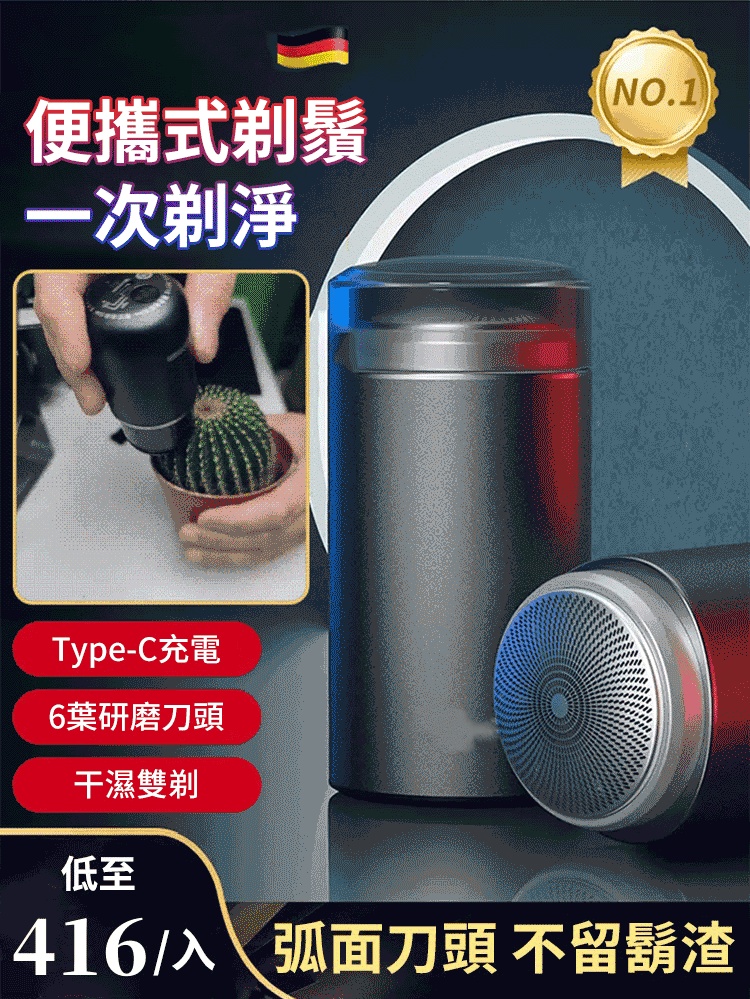 【一抹光滑小金剛】電動迷你刮鬍刀,白金六葉刀片!送老公送父親最佳禮物!