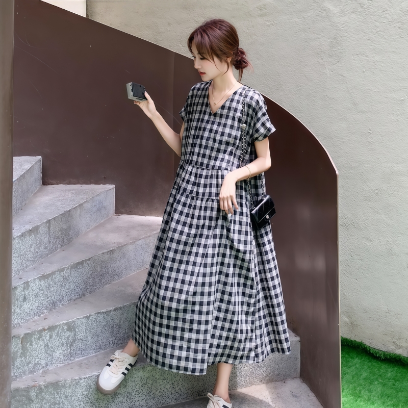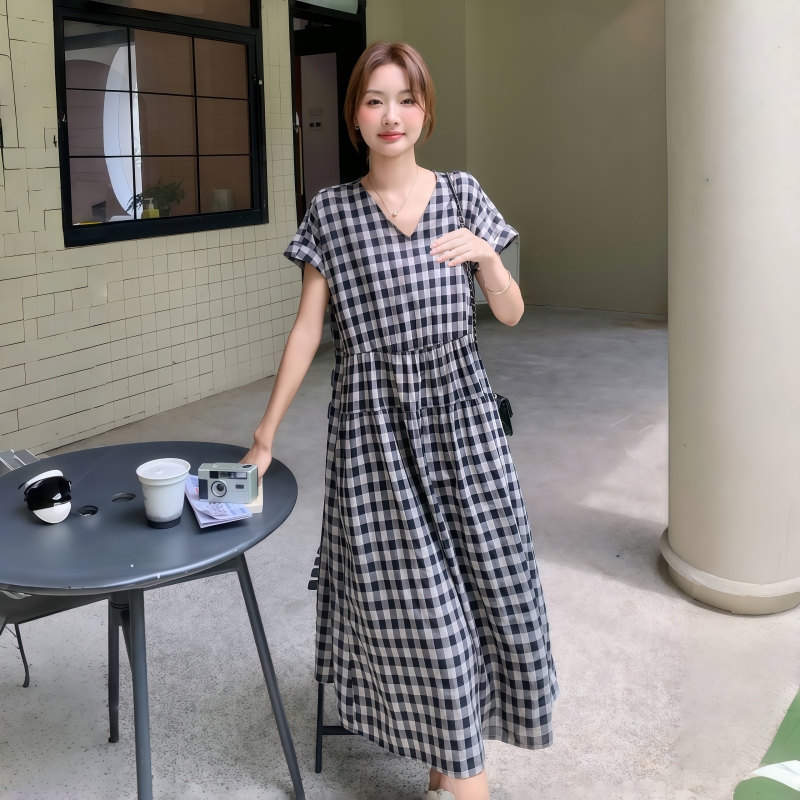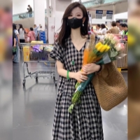 [1]【文藝格子連衣裙 免郵到手價!】 1入組僅需NT1050